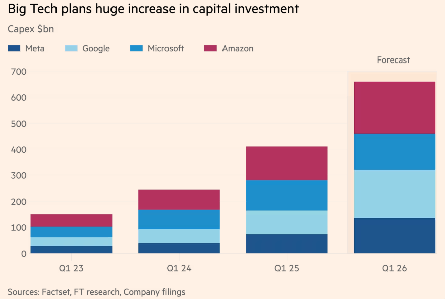 Pour les quatre grandes entreprises technologiques (Amazon, Alphabet, Microsoft et Meta Platforms), ces investissements devraient atteindre 660 milliards de dollars, selon le Financial Times đł. Ă titre de comparaison, câest davantage que le PIB des Ămirats arabes unis đŠđȘ.