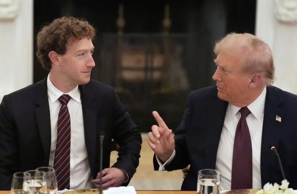 Dans les prochains mois, ces dépenses dans l’infrastructure pour l’IA ne devraient pas diminuer, ce qui est de nature à stimuler encore plus l’économie américaine. Lors d’un dîner 🍽️ à la Maison Blanche dans la State Dining Room avec 33 grands leaders de la tech, Mark Zuckerberg a affirmé à Donald Trump, tout sourire, que Meta investirait la somme astronomique de 600 milliards de dollars aux États-Unis d’ici 2028.