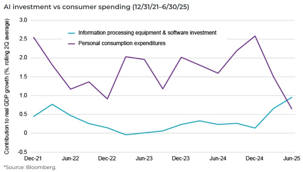 > Pour aller plus loin : l’analyse de Paul Kedrosky, un investisseur en capital-risque “Honey, AI Capex is Eating the Economy”