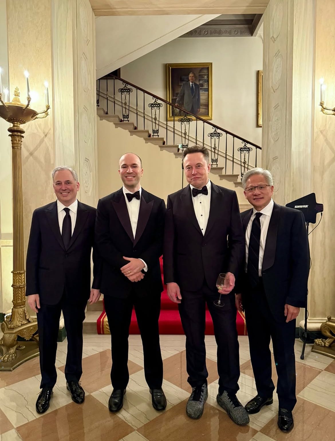 En attendant l’ouverture de la future Ballroom, une gigantesque salle de bal que fait construire le président américain avec les fonds de ses amis de la crypto et de la tech, cette soirée avait des allures de sommet informel entre les hommes les plus riches et les plus puissants d’Amérique.