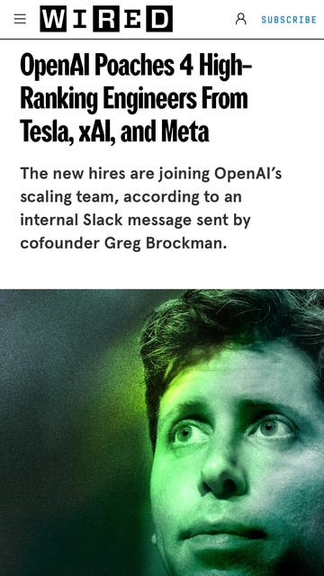 Cette stratĂ©gie de recrutement par lâargent nâest dâailleurs pas du goĂ»t de Sam Altman comme il lâa indiquĂ© dans un memo adressĂ© aux chercheurs dâOpenAI pour les dissuader de quitter le navire :