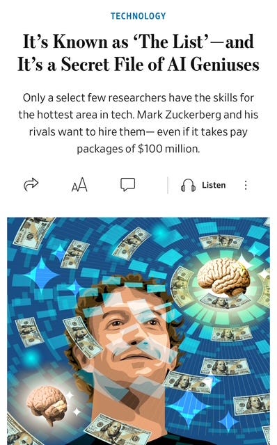 Mark Zuckerberg ne sâarrĂȘte pas lĂ : il veut constituer une dream team đ«. Pour devenir le leader de lâintelligence artificielle gĂ©nĂ©rale, un tournant hypothĂ©tique oĂč lâIA Ă©galerait ou dĂ©passerait lâintelligence humaine, et rattraper le retard pris par Meta avec son modĂšle Llama, il lance une campagne de recrutement trĂšs agressive et coĂ»teuse des meilleurs talents en provenance dâOpenAI, Anthopic et Apple, auxquels il propose des rĂ©munĂ©rations astronomiques đČ.