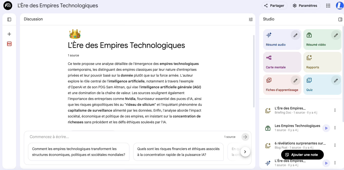 GrĂące Ă NotebookLM, l'outil d'IA de Google, mon essai sur les empires technologiques prend vie dans un documentaire de six minutes